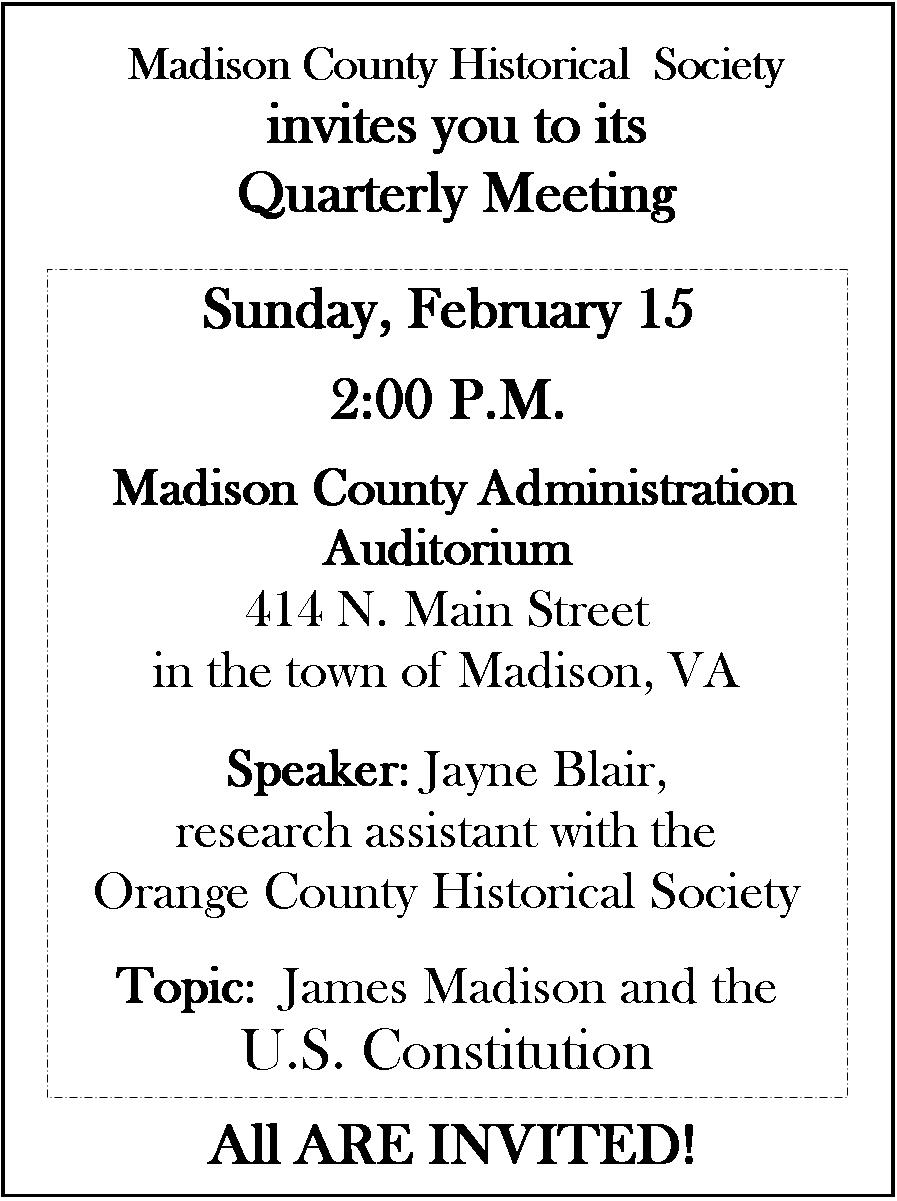 Madison County Historical Society - Quarterly Meeting (All are invited)